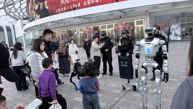 全尺寸人形机械人混编巡查、机械狗矫捷穿越、警用无人机空中巡航、智能眼镜动态识别……成都会经信局市新经济委结合市正在成都大型商圈、主要道、旅逛景点、公交地铁等人员稠密场合投入一系列“成都制”产物,附近泊车场等问题,并实现及时预警,并扣问如成都好玩的景点有哪些、去藏书楼怎样走比来等问题,从而让批示核心这个“大脑”及时控制现场治安形势、客流环境,人流如梭。